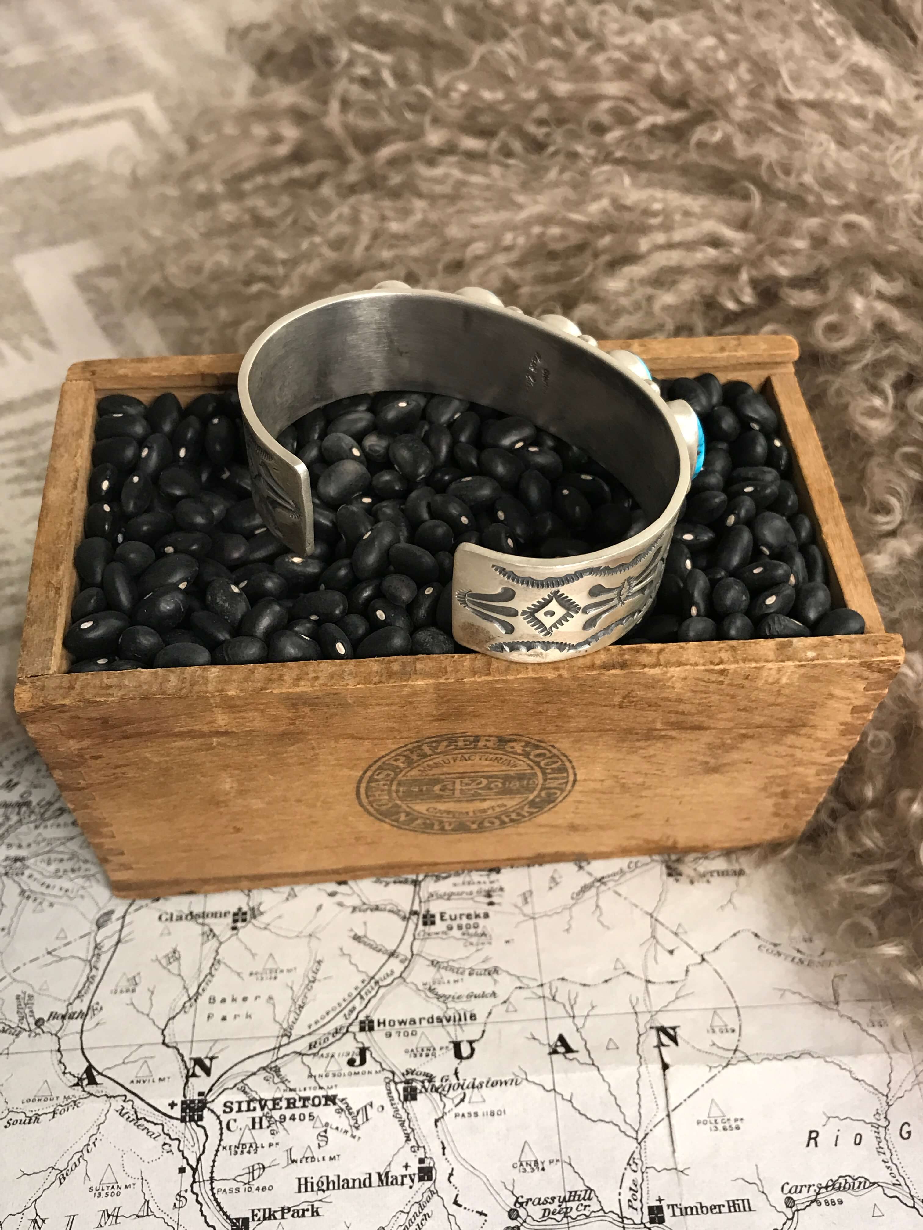 Do not get your jewelry wet.Water, hand sanitizer, and any type of liquid product can cause stones to loosen. Always remove rings before washing your hands or using hand sanitizer or lotions. Most Native American artists and silversmiths in general use a natural fiber such as sawdust or cork shavings to set their stones and when wet this can expand and cause damage to the piece. Avoid exposing your jewelry to heat or chemicals like ammonia or chlorine, most household cleaning products, and products like lotions and oils.
