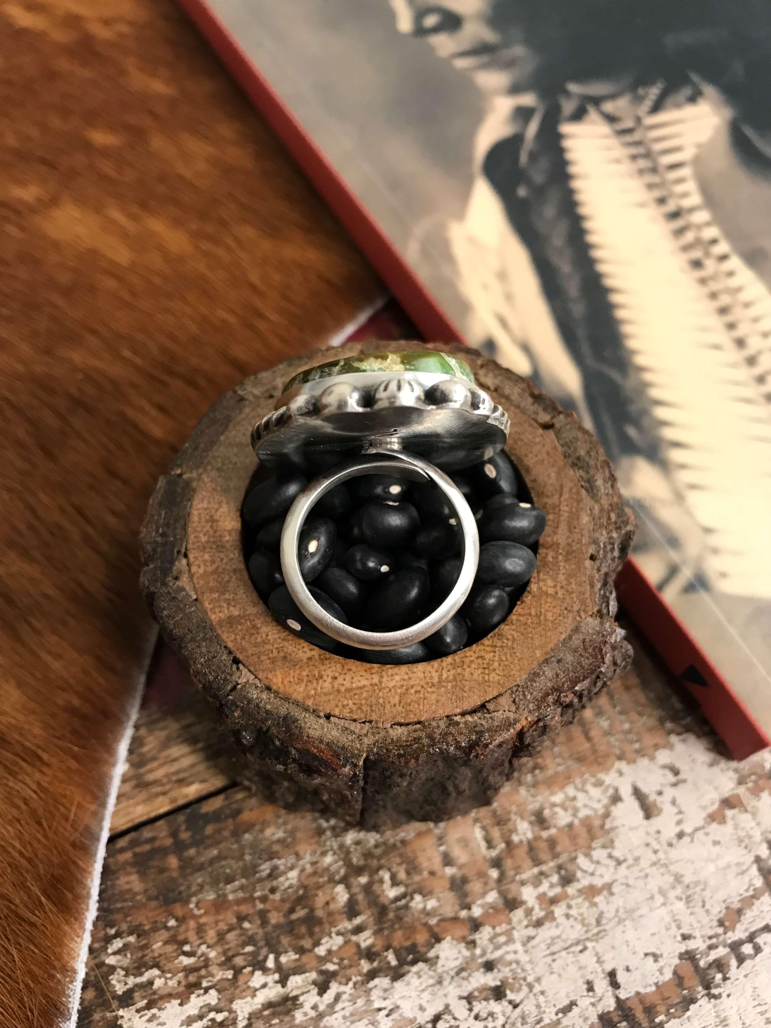 Do not get your jewelry wet.Water, hand sanitizer, and any type of liquid product can cause stones to loosen. Always remove rings before washing your hands or using hand sanitizer or lotions. Most Native American artists and silversmiths in general use a natural fiber such as sawdust or cork shavings to set their stones and when wet this can expand and cause damage to the piece. Avoid exposing your jewelry to heat or chemicals like ammonia or chlorine, most household cleaning products, and products like lotions and oils.