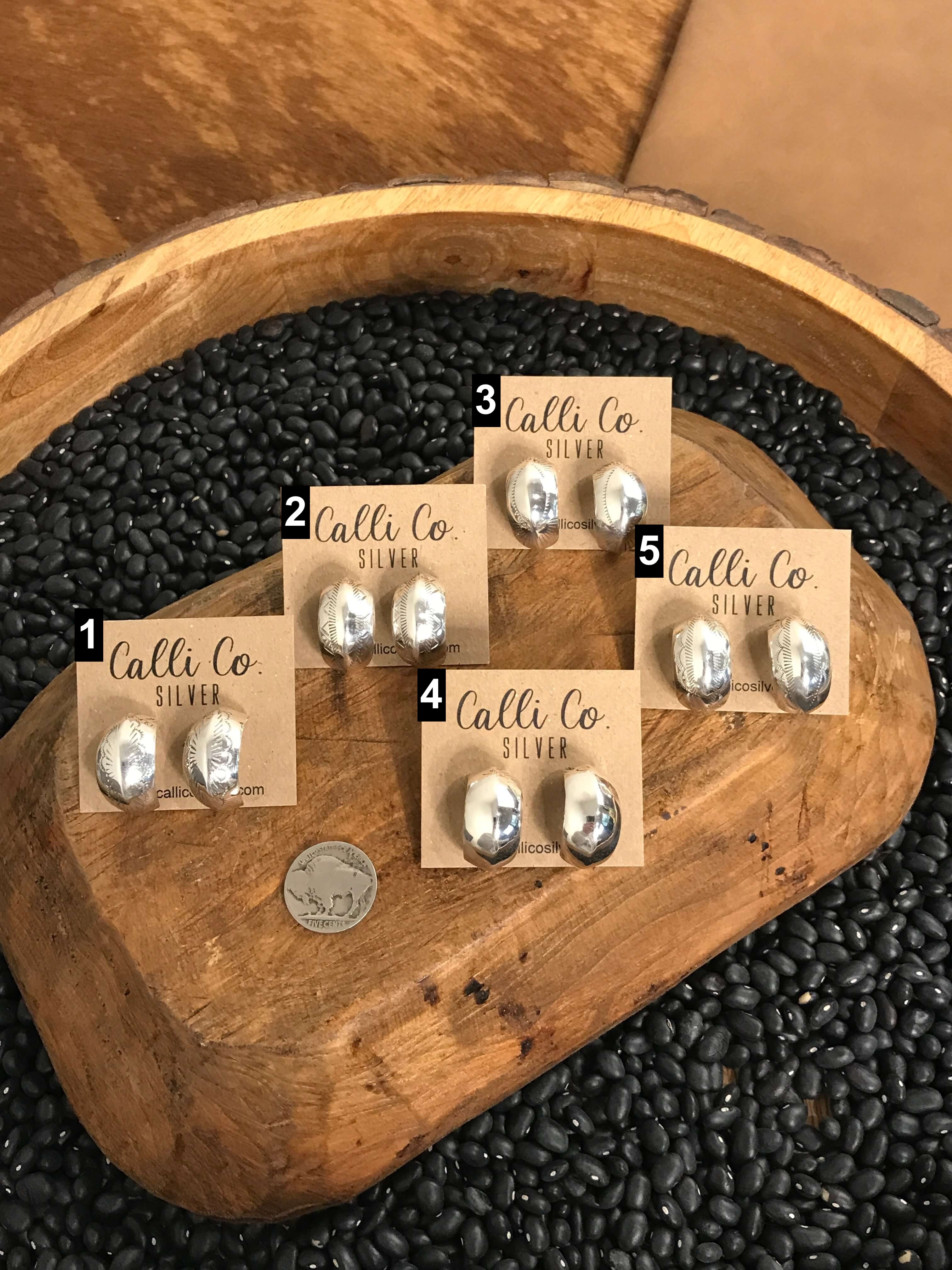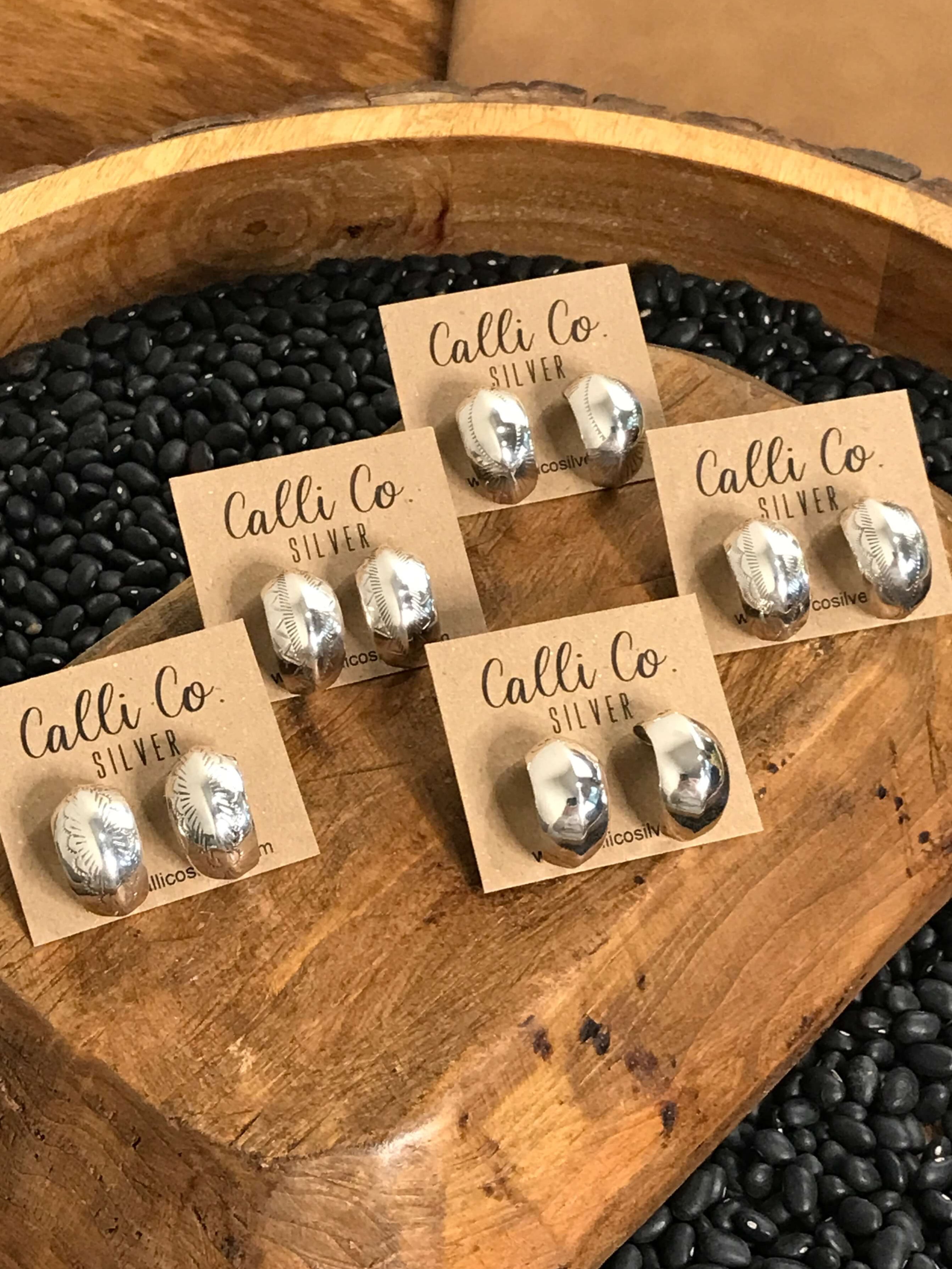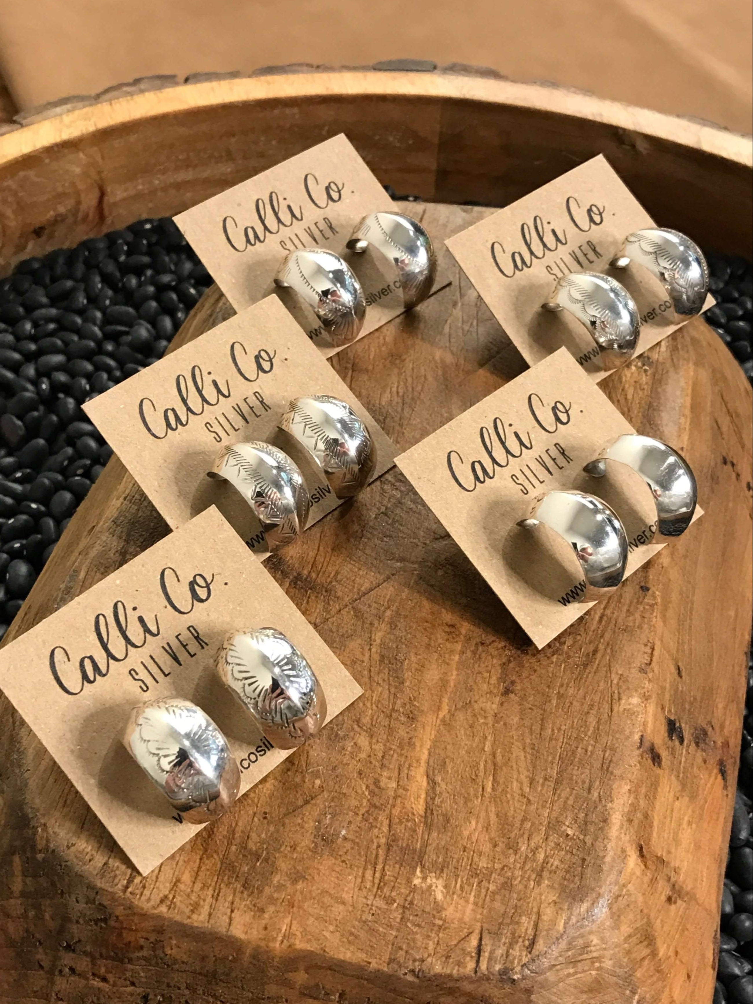 The Lunja Stamped Hoop Earrings from Calli Co Silver
