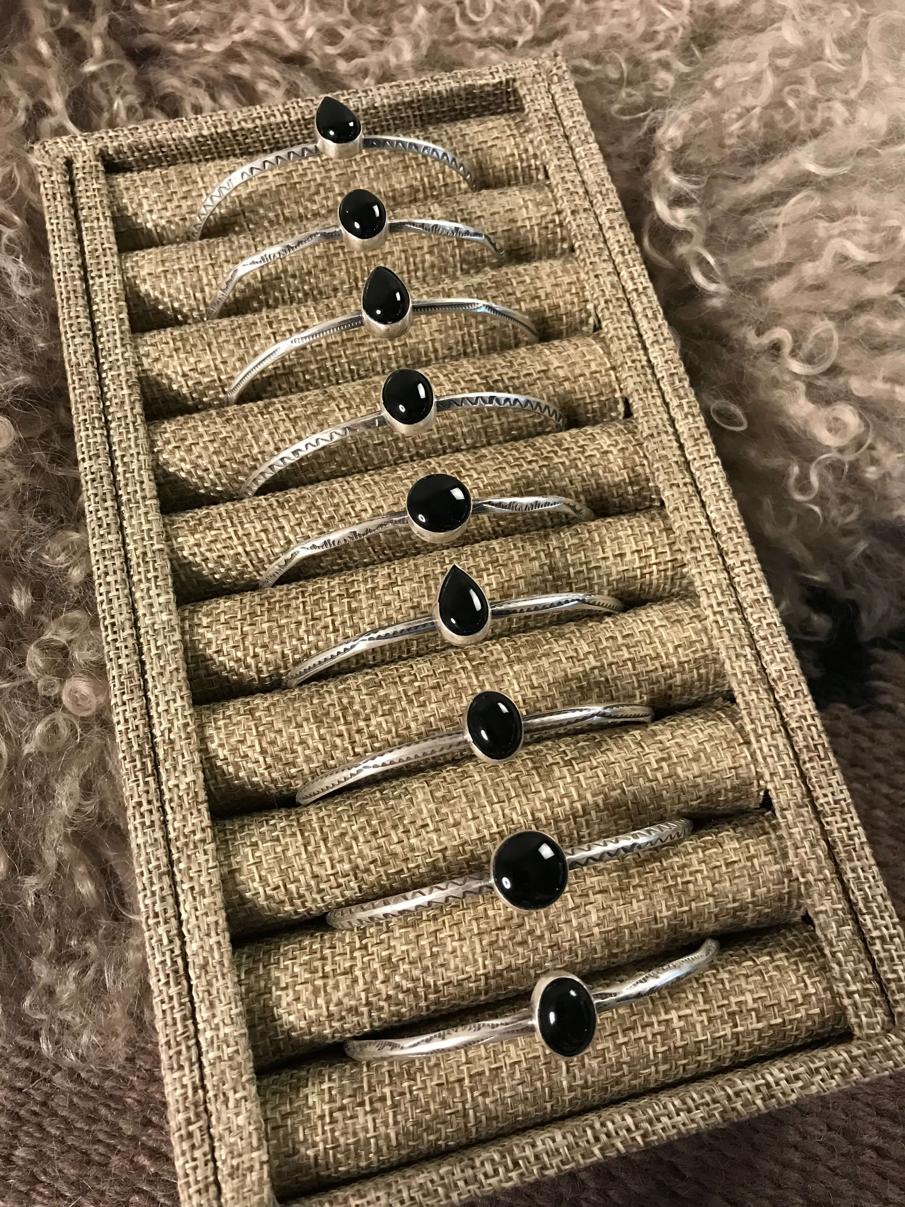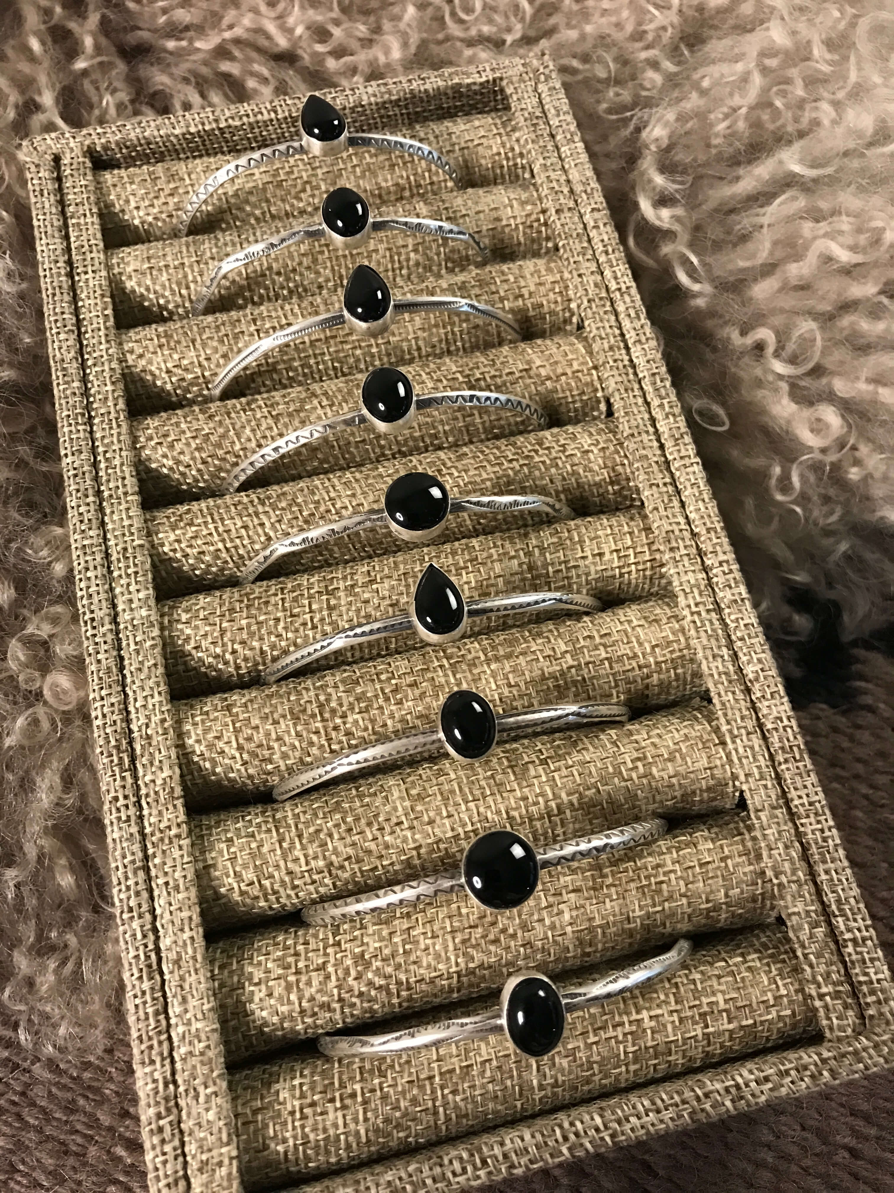 Women's Sterling and Onyx Navajo Handmade Cuff