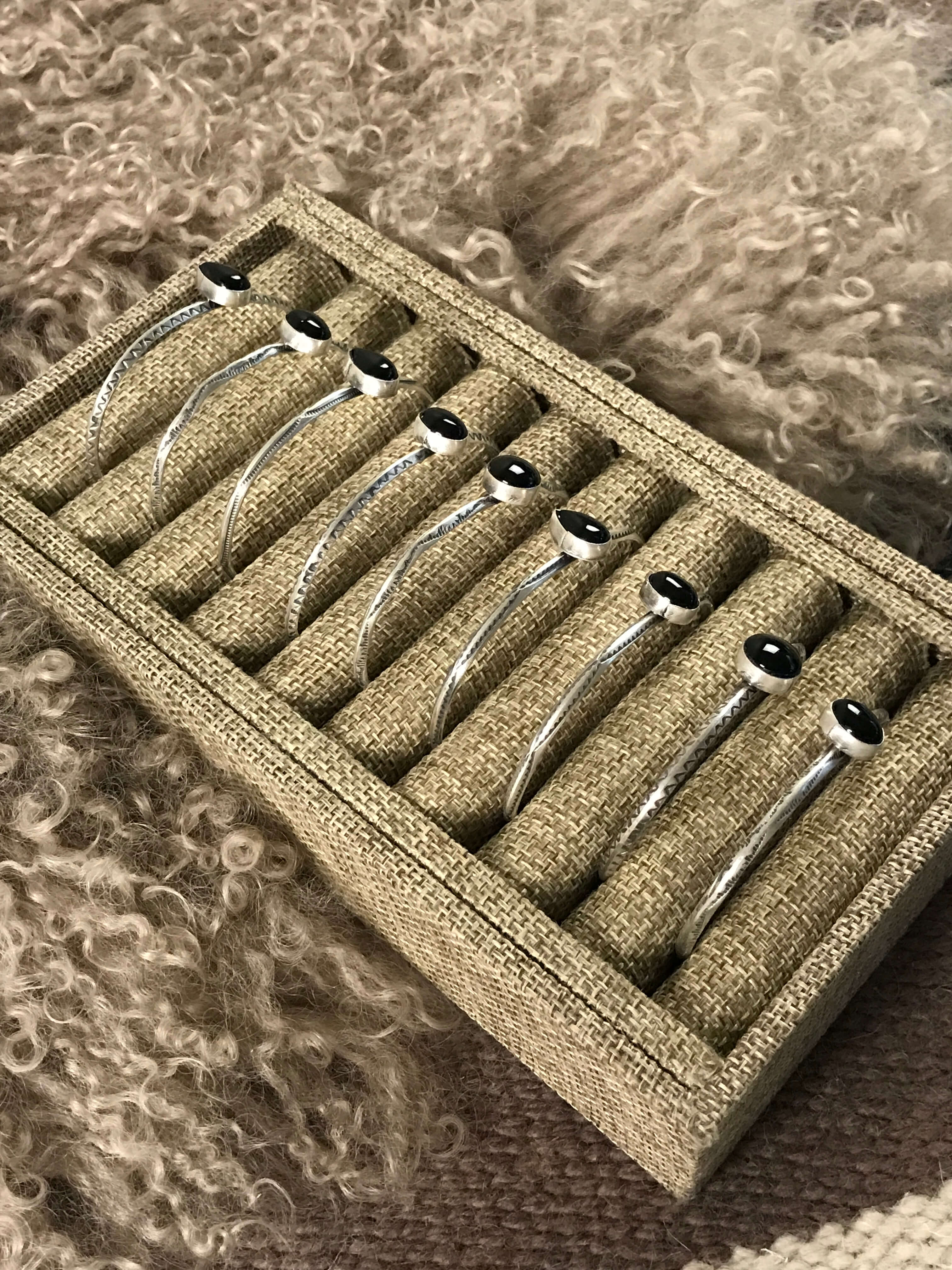 All of our products are made from .925 sterling and fine silver with other precious metal accents like gold, copper, or brass. Variations in stone and silver design are to be expected.