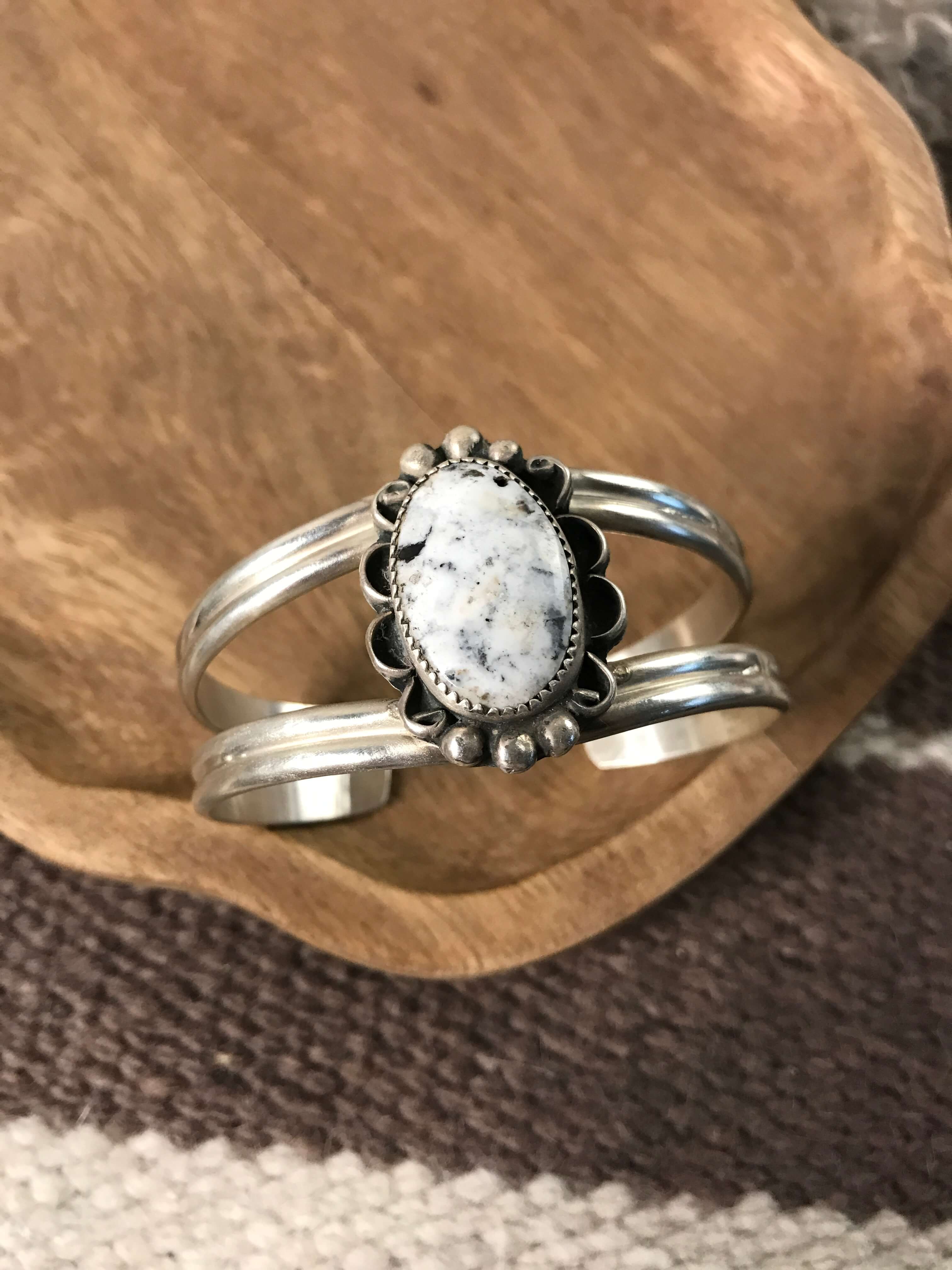 Women's Sterling and White Buffalo Navajo Handmade Cuff