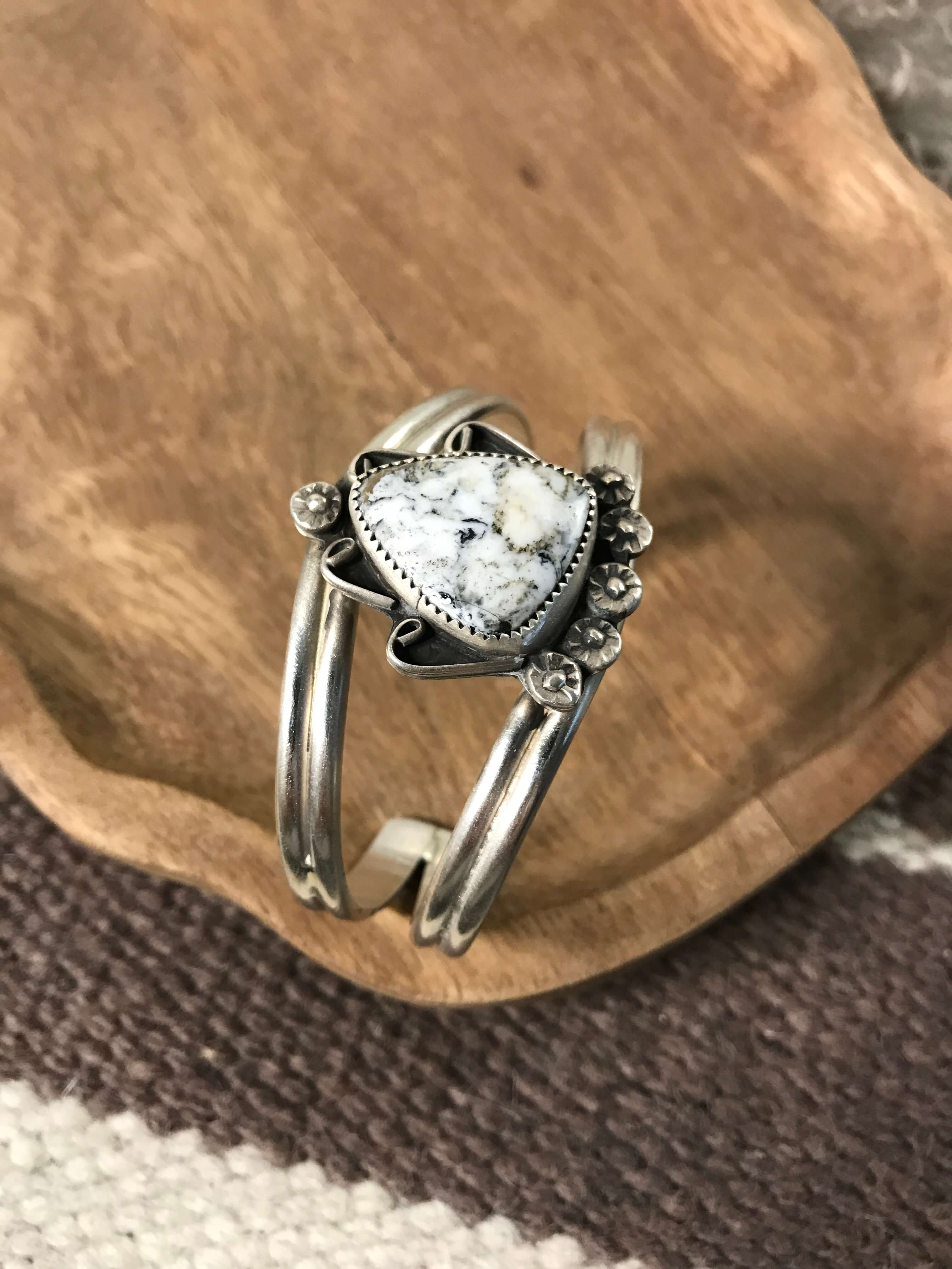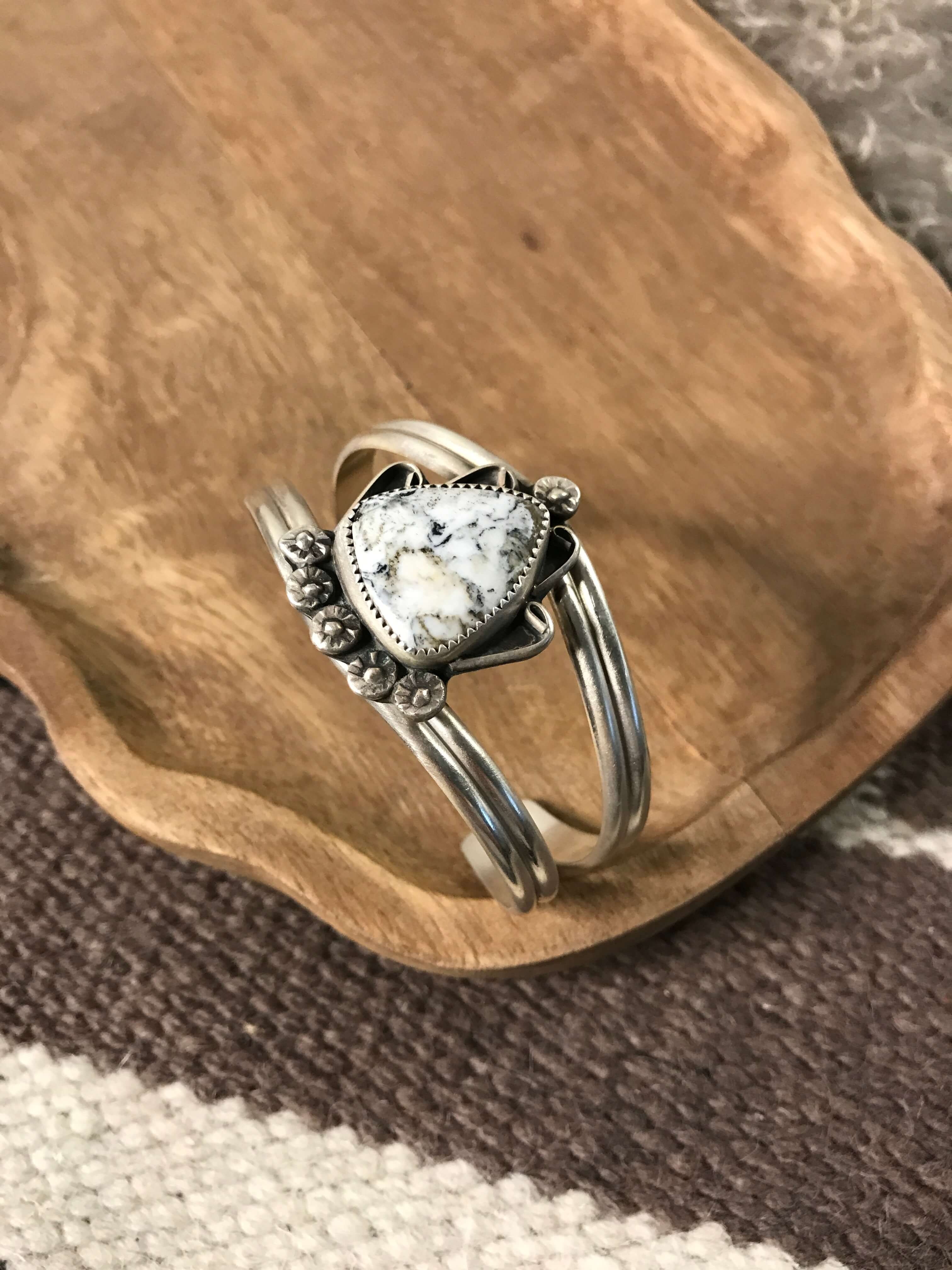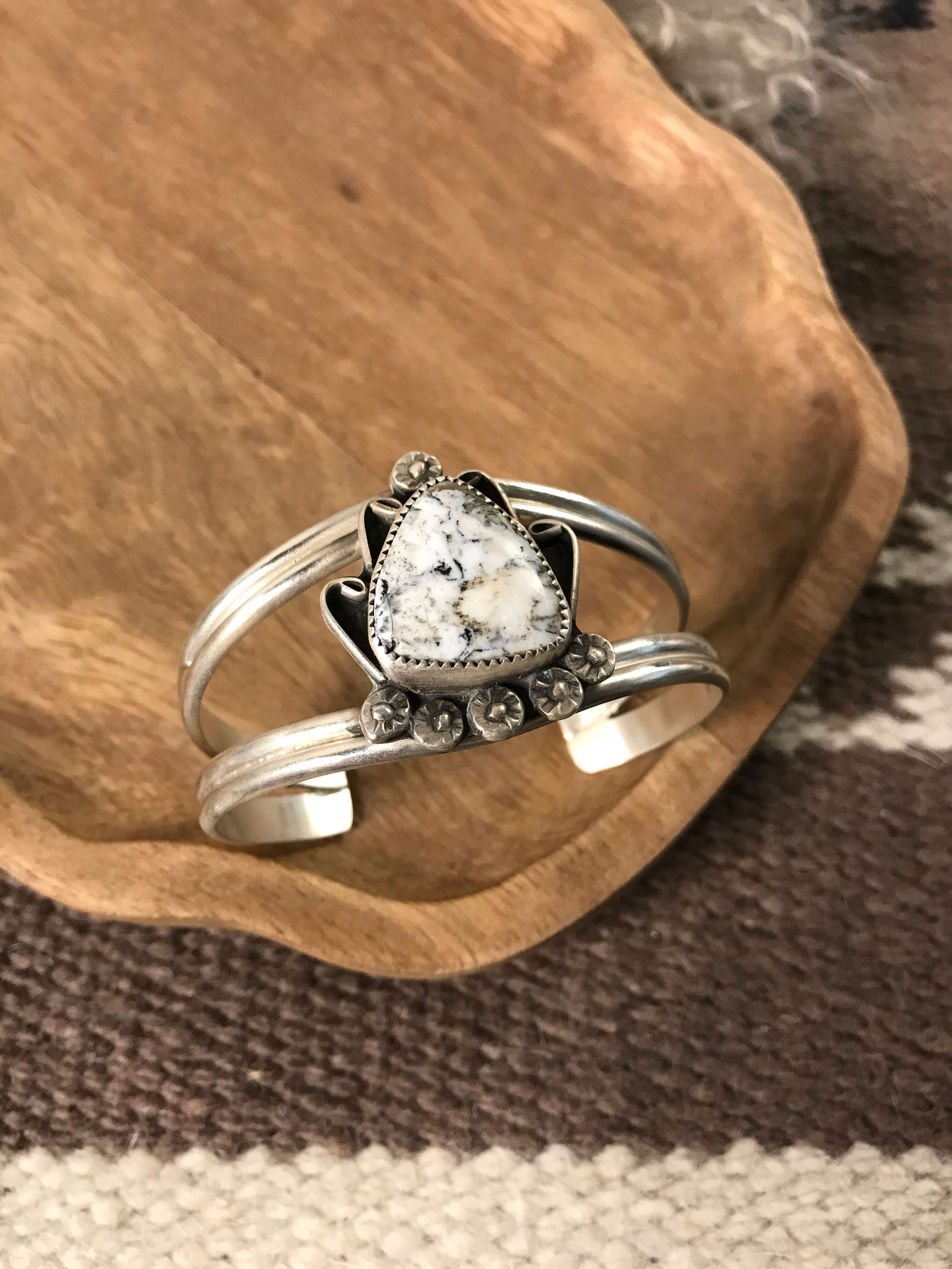 Women's Sterling and White Buffalo Navajo Handmade Cuff