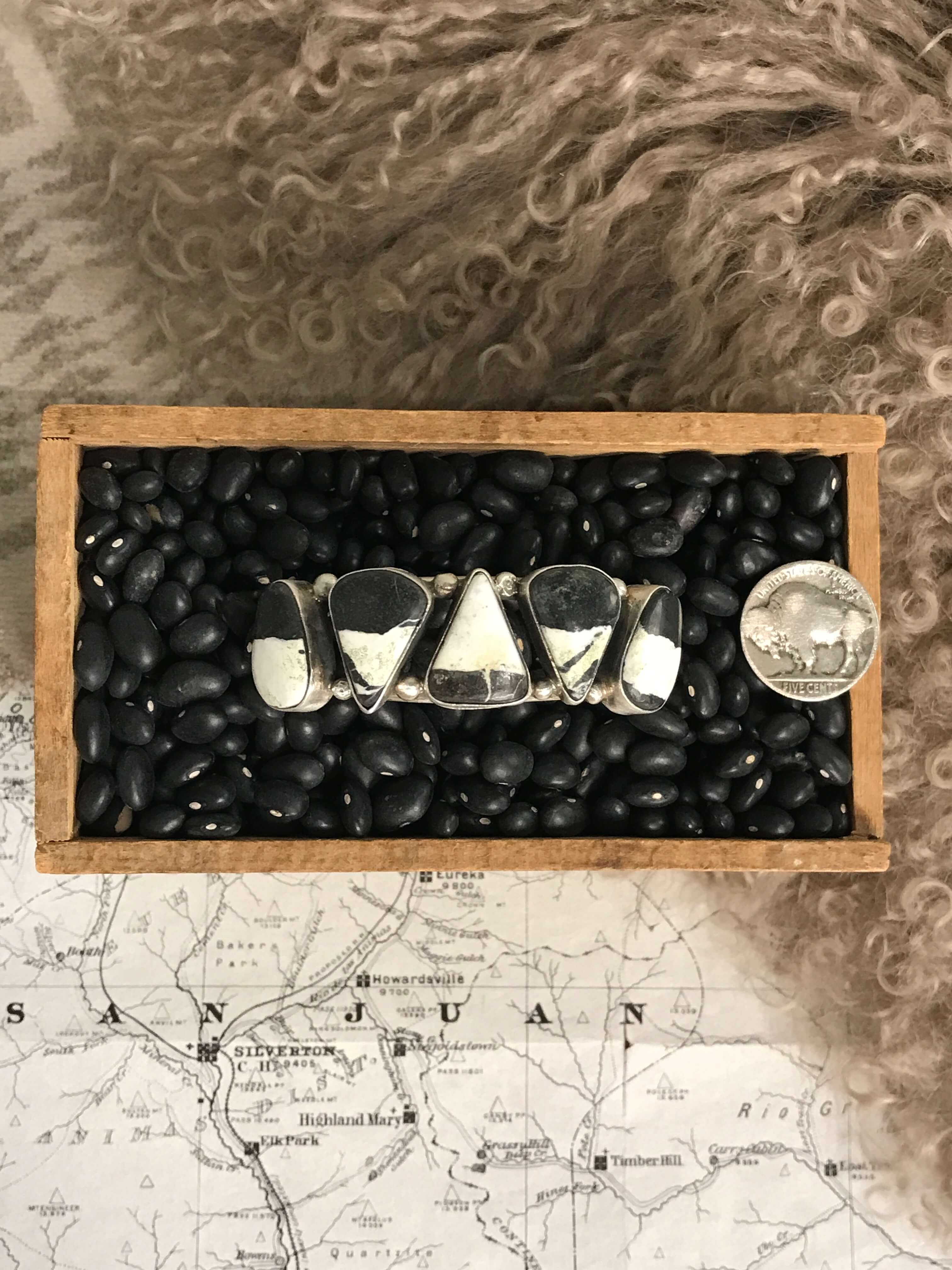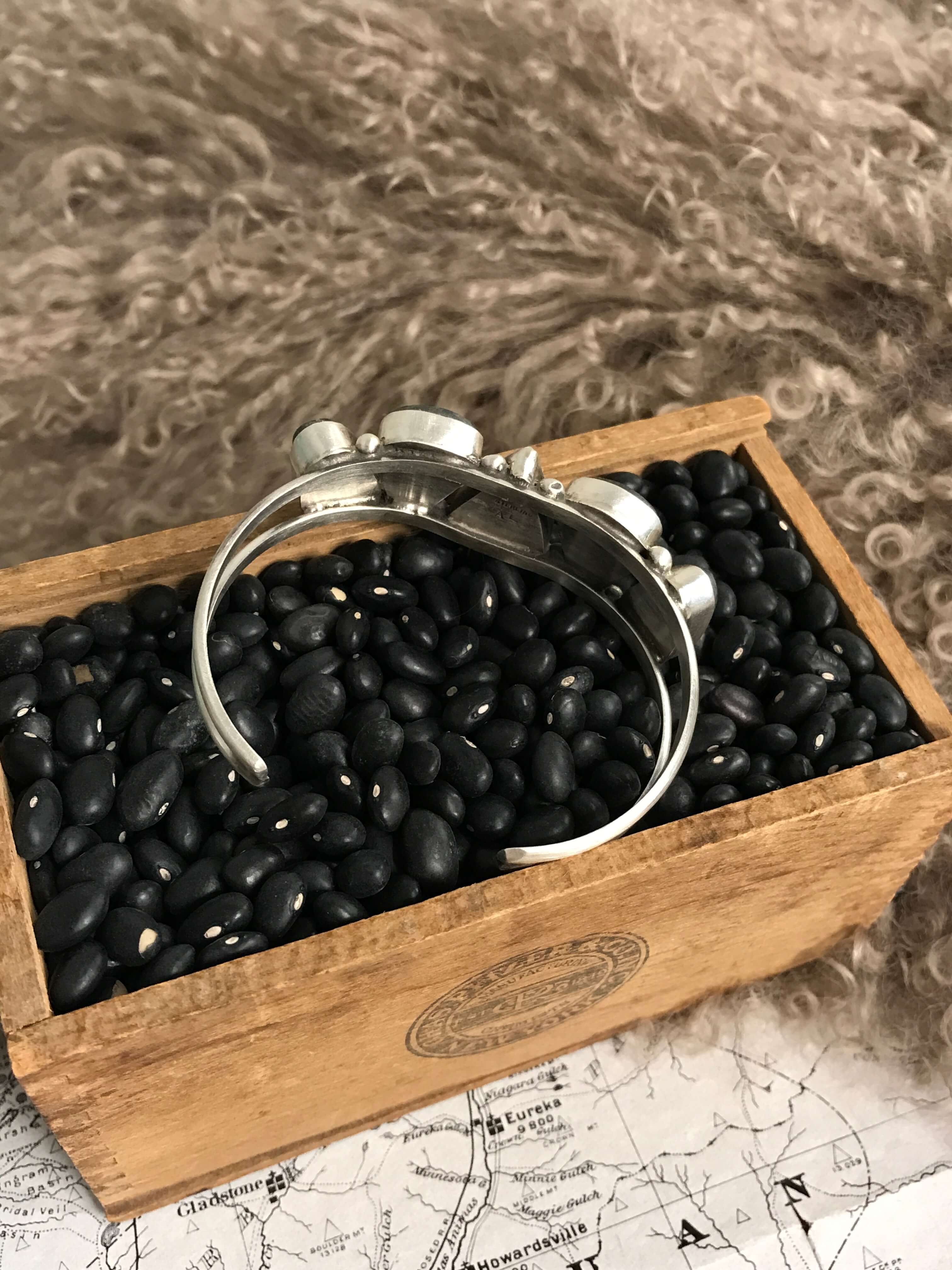 Women's Sterling and White Buffalo Navajo Handmade Cuff