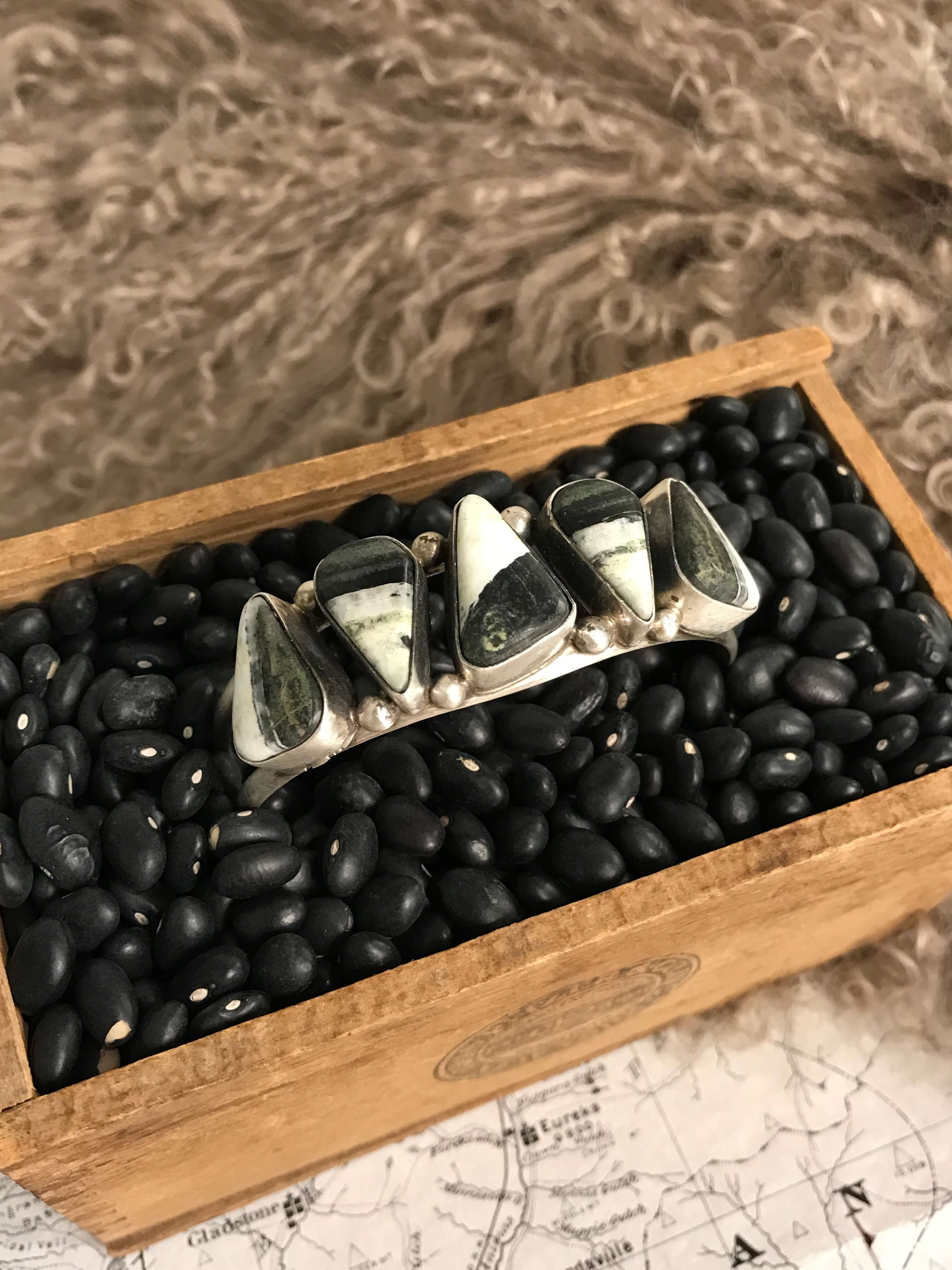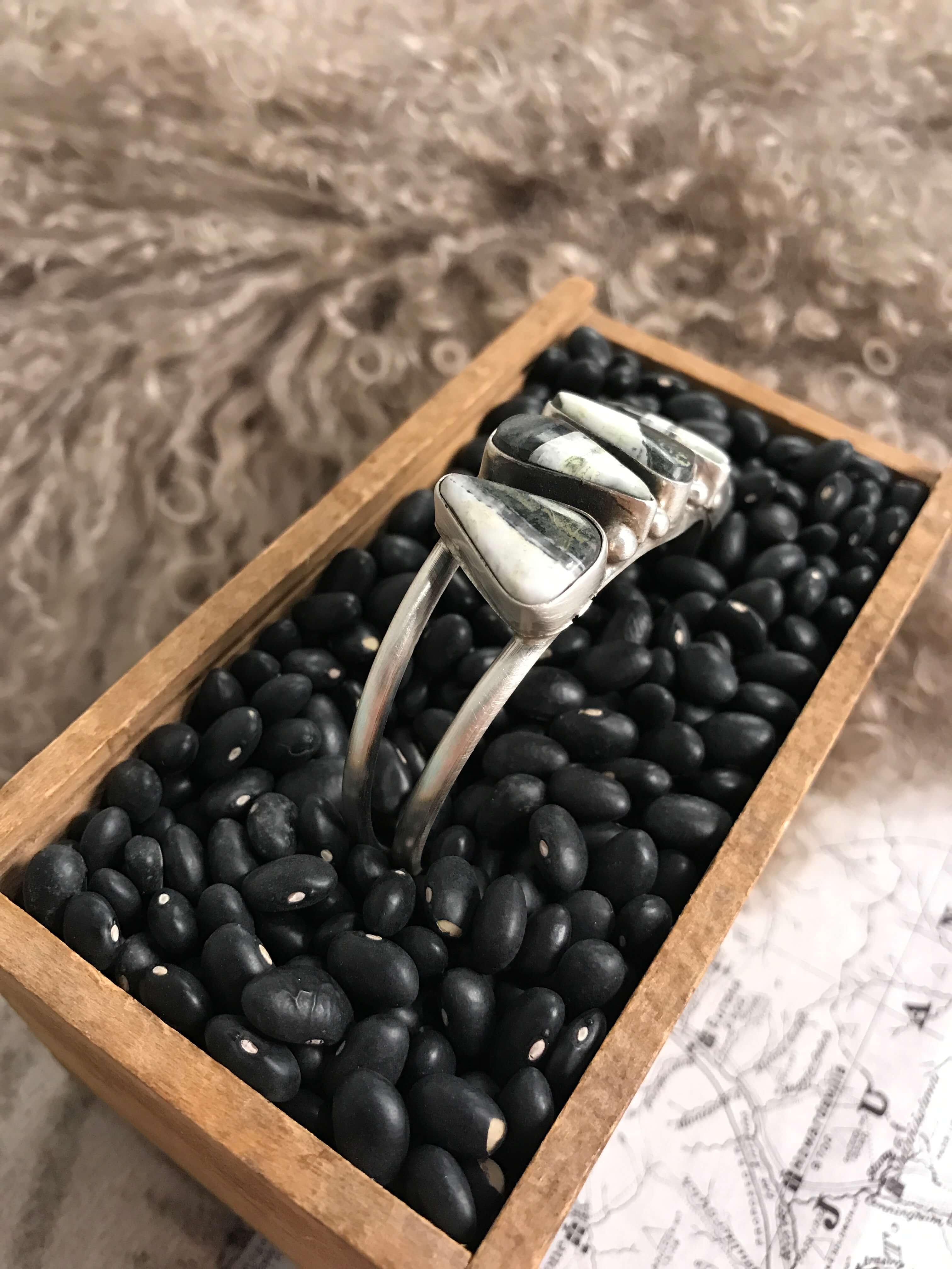Women's Sterling and White Buffalo Navajo Handmade Cuff