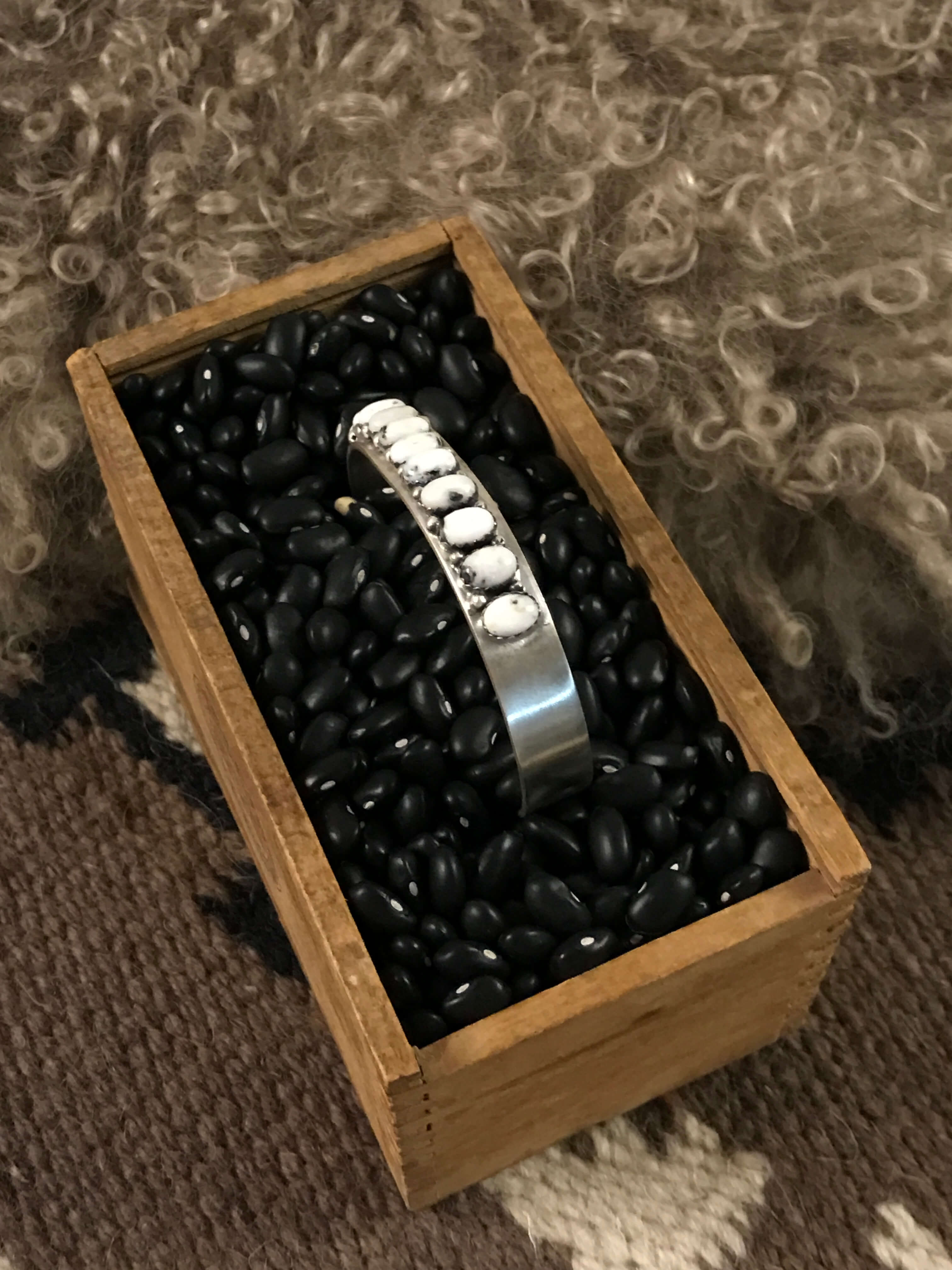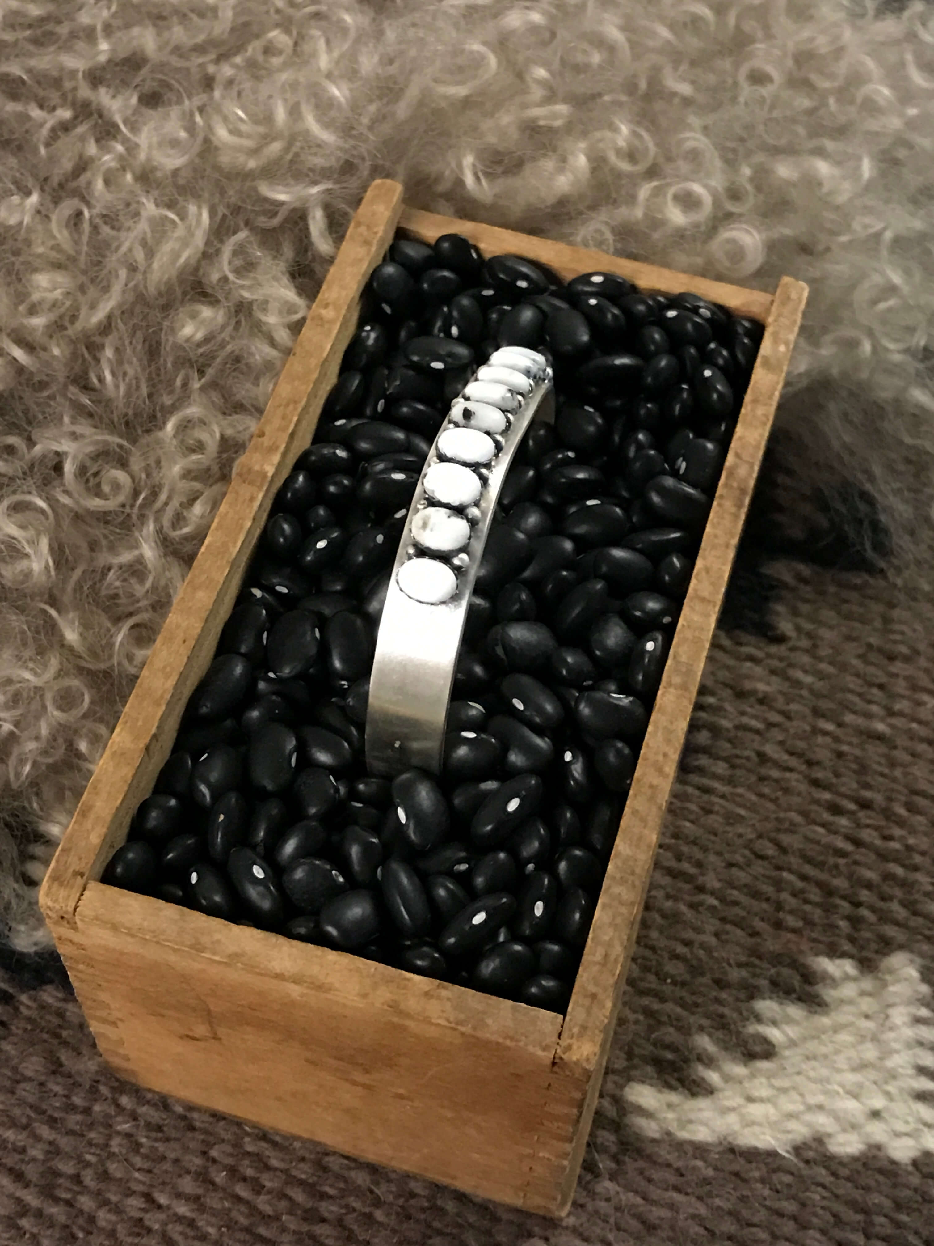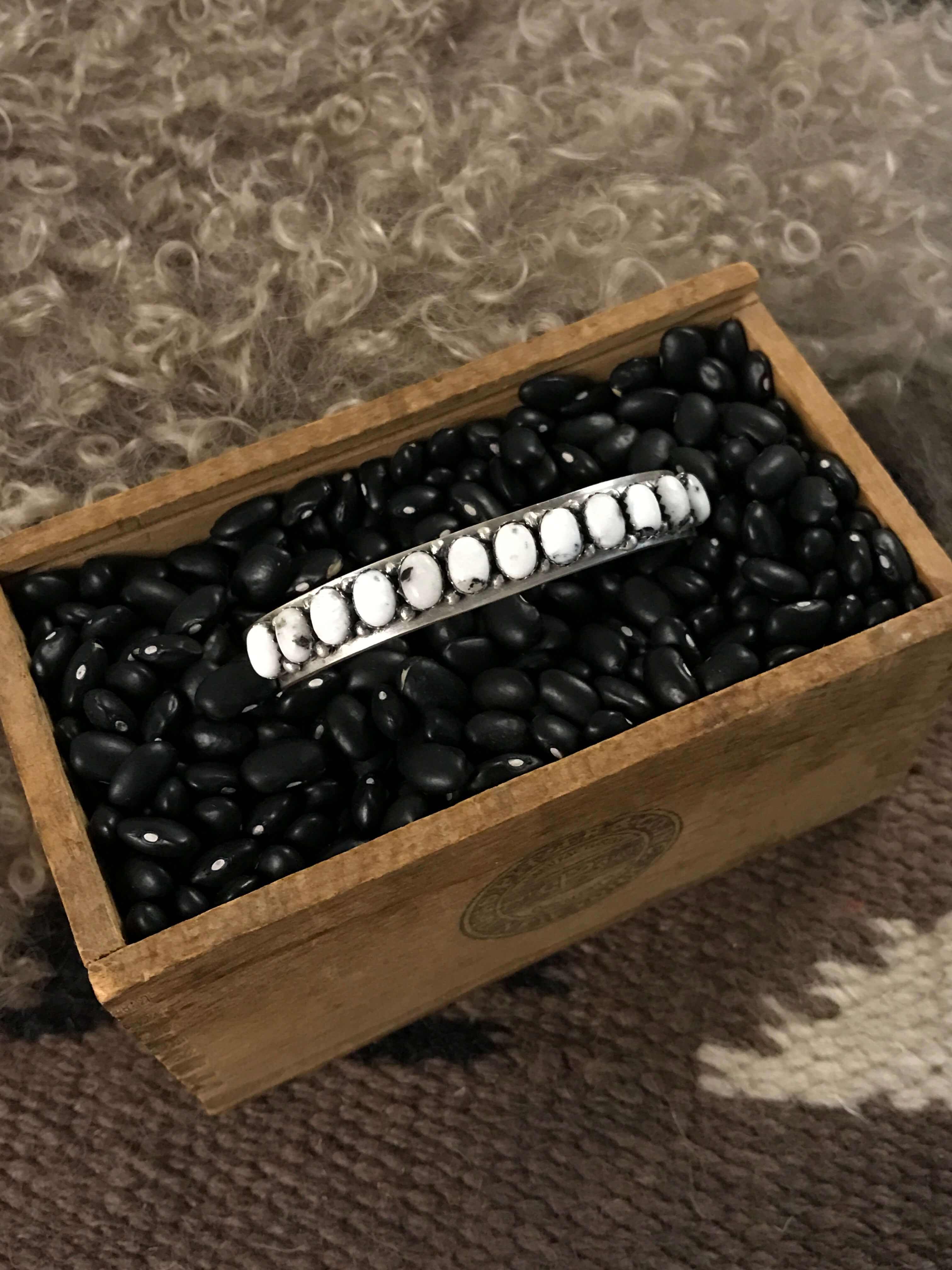 Women's Sterling and White Buffalo Navajo Handmade Cuff