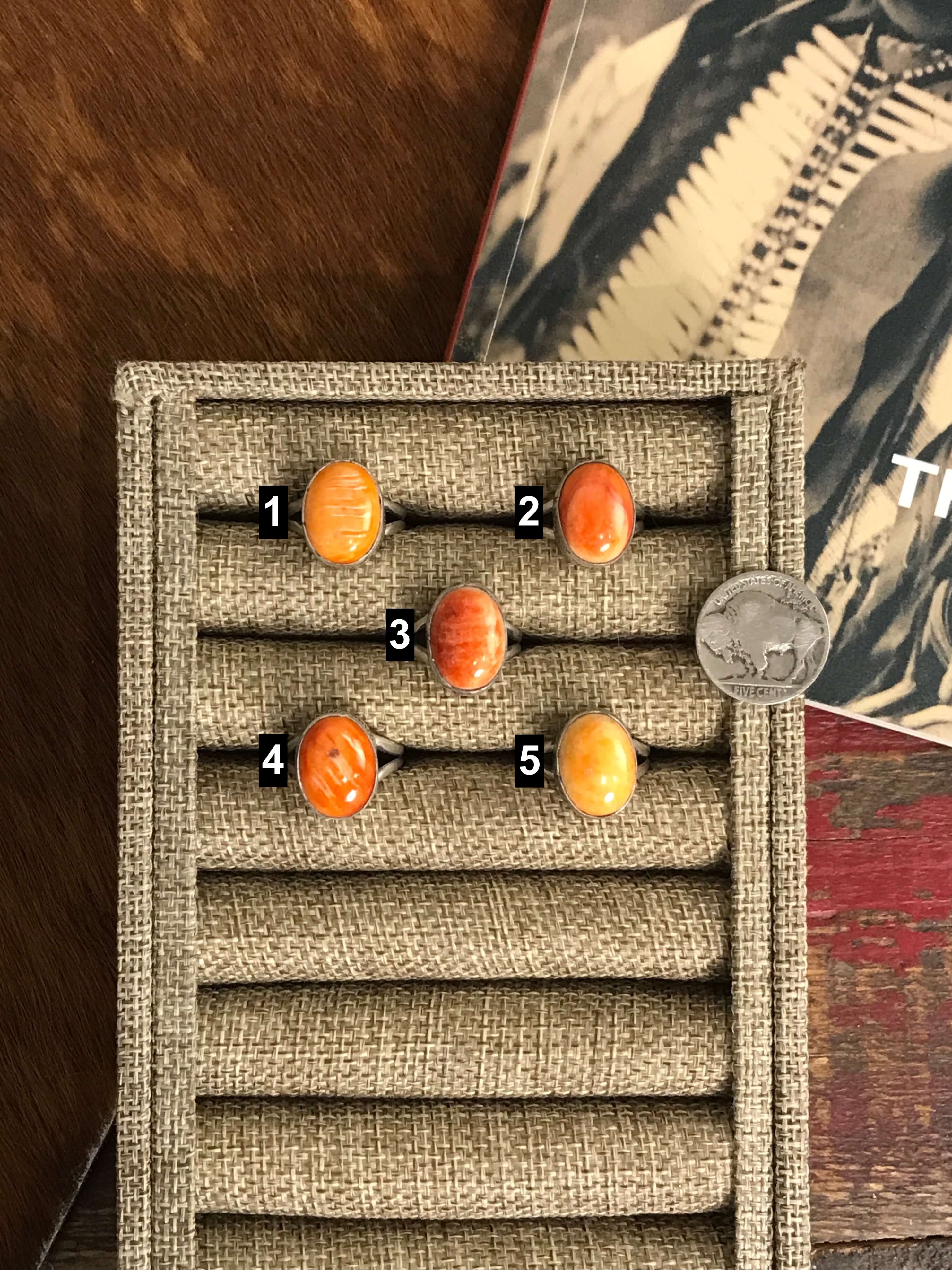 Women's Navajo Handmade Orange Spiny Rings