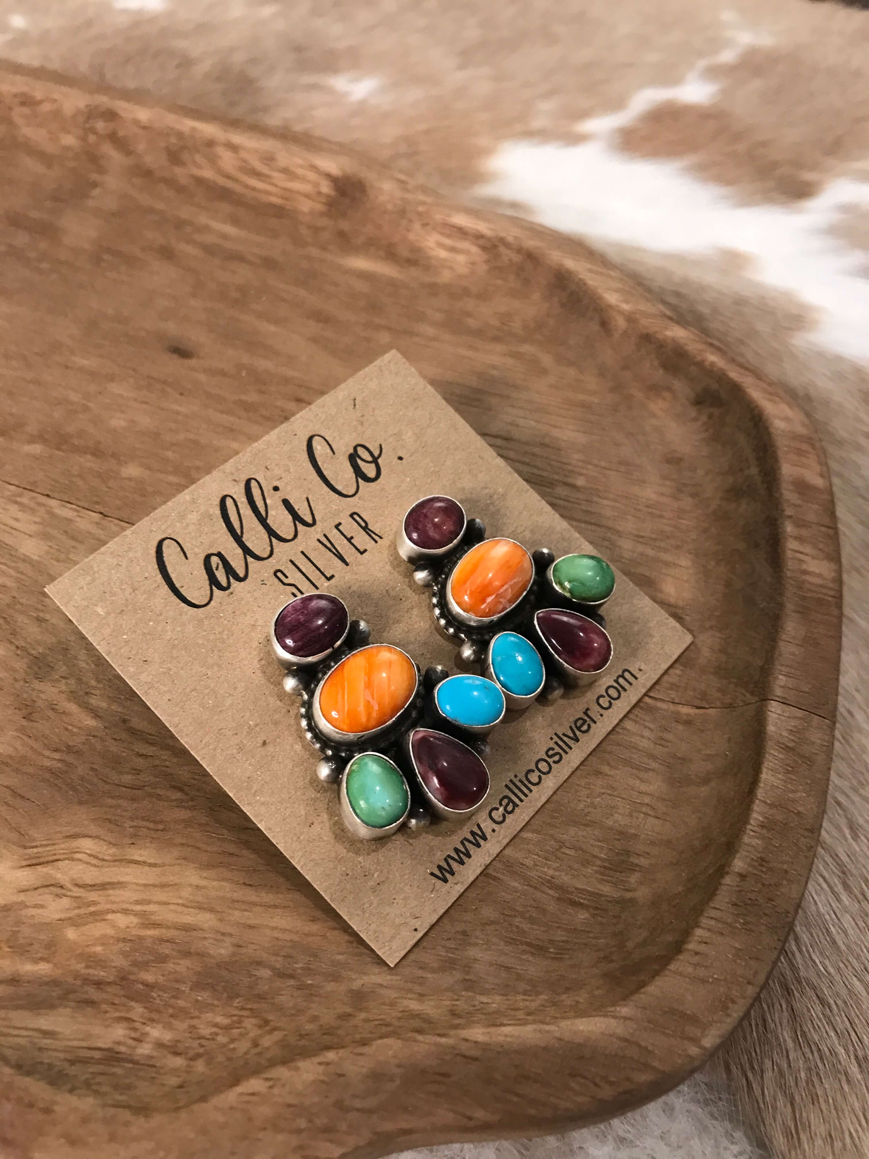 Women's Navajo Handmade Multi Stone Cluster Earrings