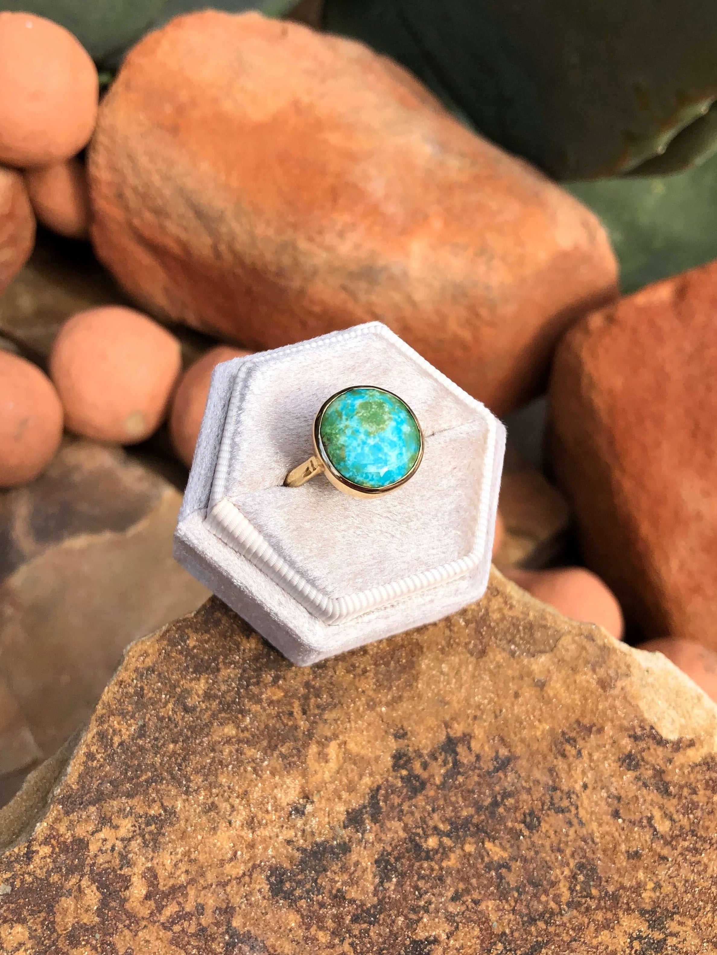 The London 14k and Turquoise Ring 25, Sz 8 from Calli Co. Silver