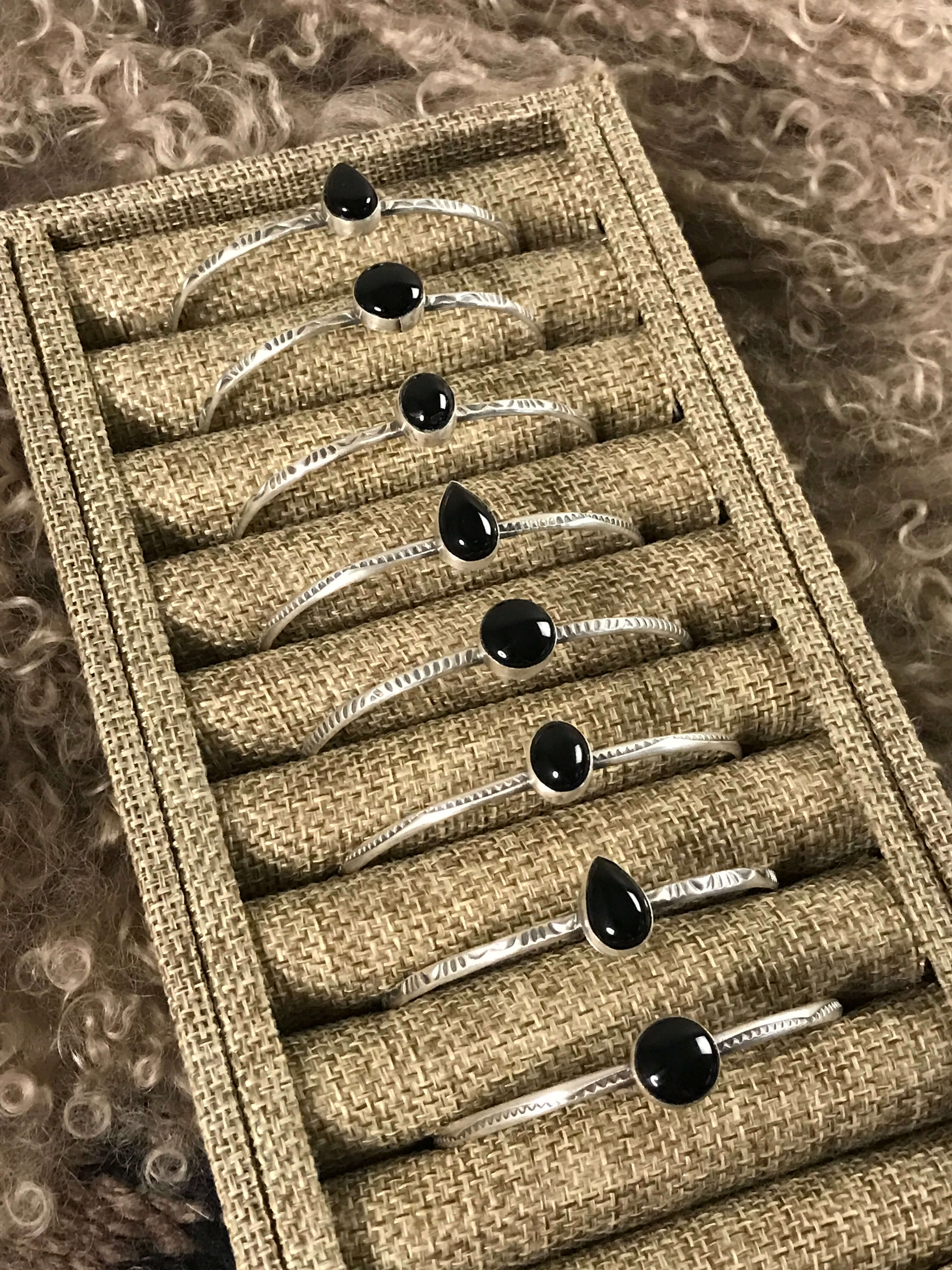 Women's Sterling and Onyx Navajo Handmade Cuff
