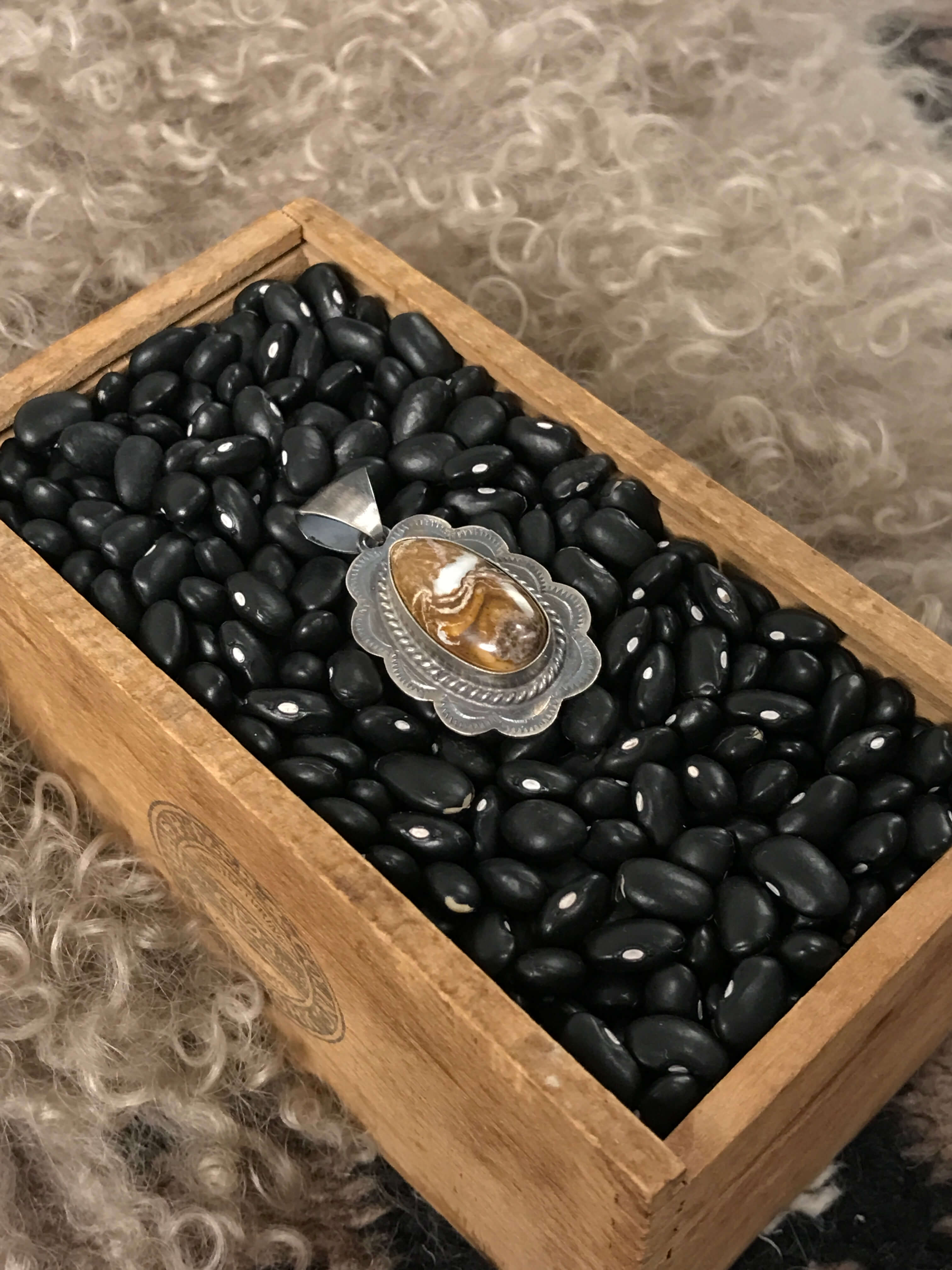 All of our products are made from .925 sterling and fine silver with other precious metal accents like gold, copper, or brass. Variations in stone and silver design are to be expected.