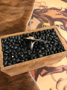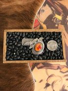 Under no circumstances should you expose an inlay piece to any type of water or moisture. Inlaid stones are delicately set and can be displaced from exposure to moisture. If you have further questions about how to care for your handmade pieces please email us.