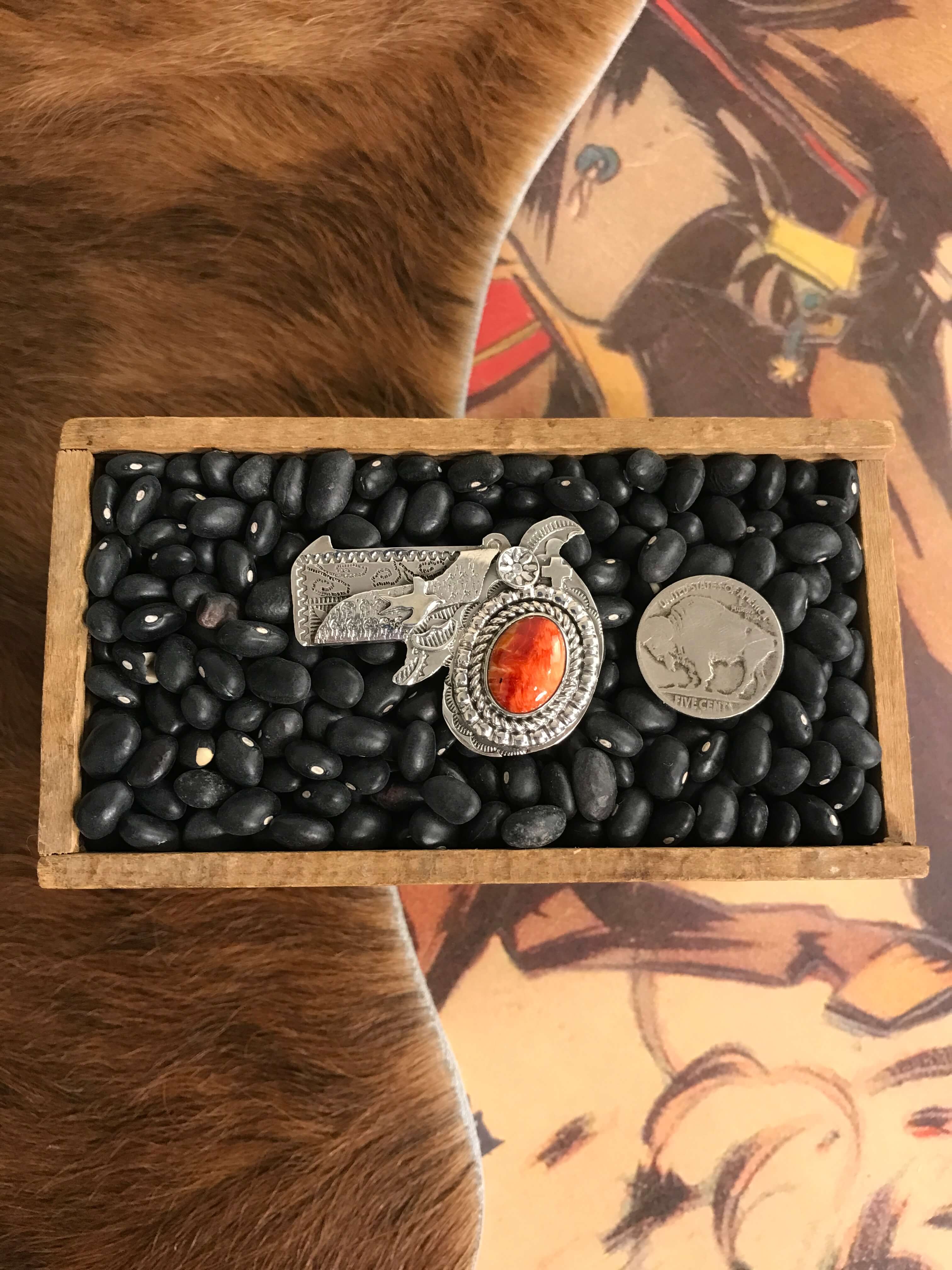 All of our products are made from .925 sterling and fine silver with other precious metal accents like gold, copper, or brass. Variations in stone and silver design are to be expected.